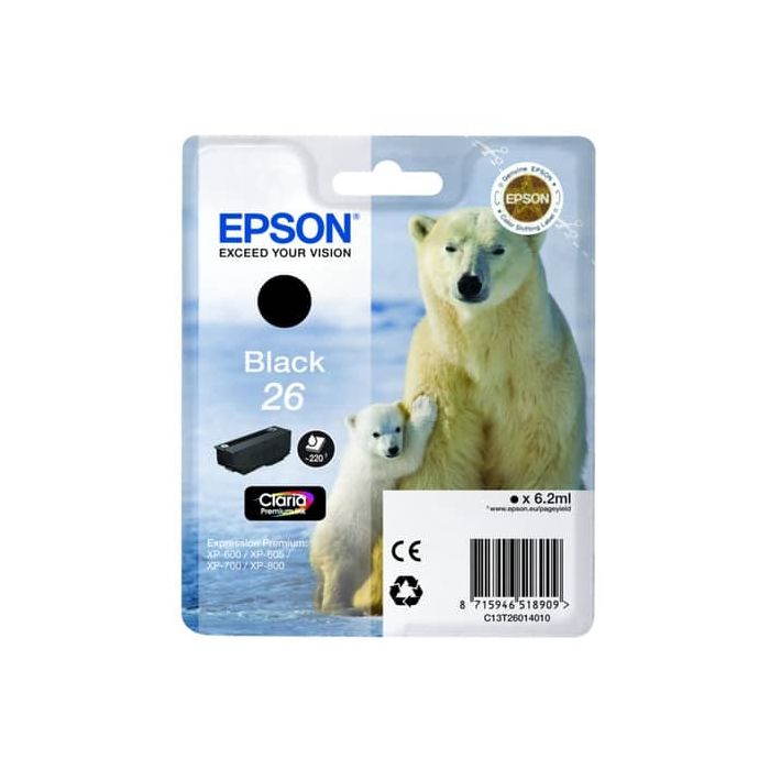 Cartuccia inkjet ink pigmentato Orso polare 26 Epson nero C13T26014012